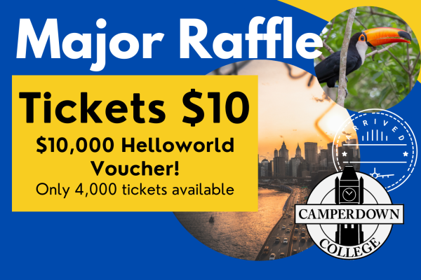 Our major raffle will be drawn at the Senior Campus Presentation Day on Monday 15th December. Up for grabs is a $10,000 travel voucher from Helloword Camperdown. You have to be in it to win it!