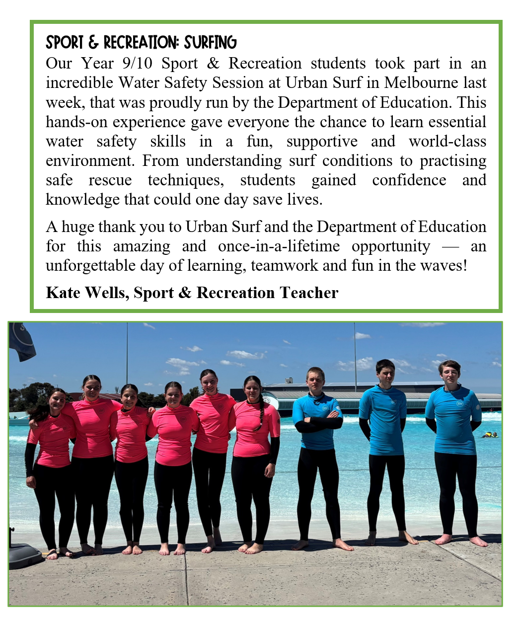Year 9/10 Sport & Recreation: Surfing